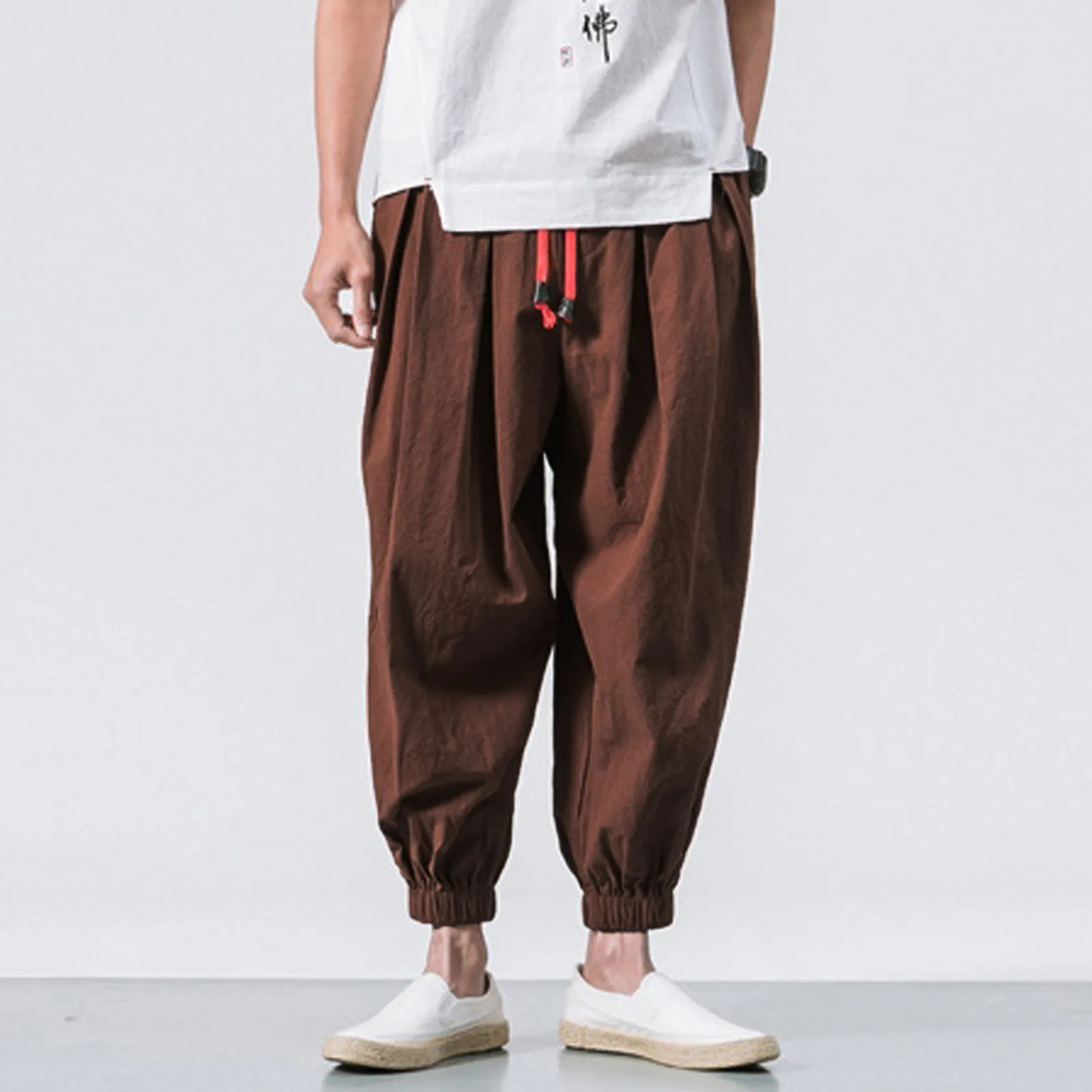 New Oversize Men Loose Harem Pants Autumn Chinese Linen Overweight Sweatpants High Quality Casual Brand Trousers Male