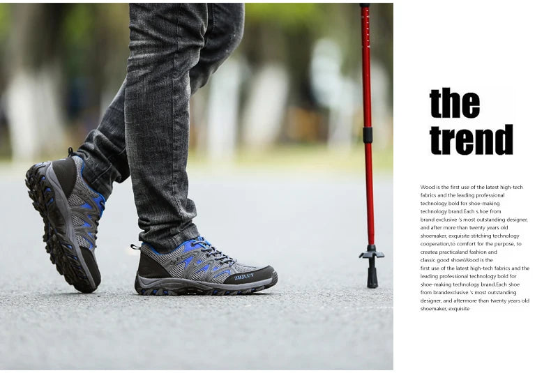 New Summer Men Casual Shoes Outdoor Mesh Sneakers Women Non-slip Lace Up Trekking Footwear Breathable Camping Spring Black Shoes