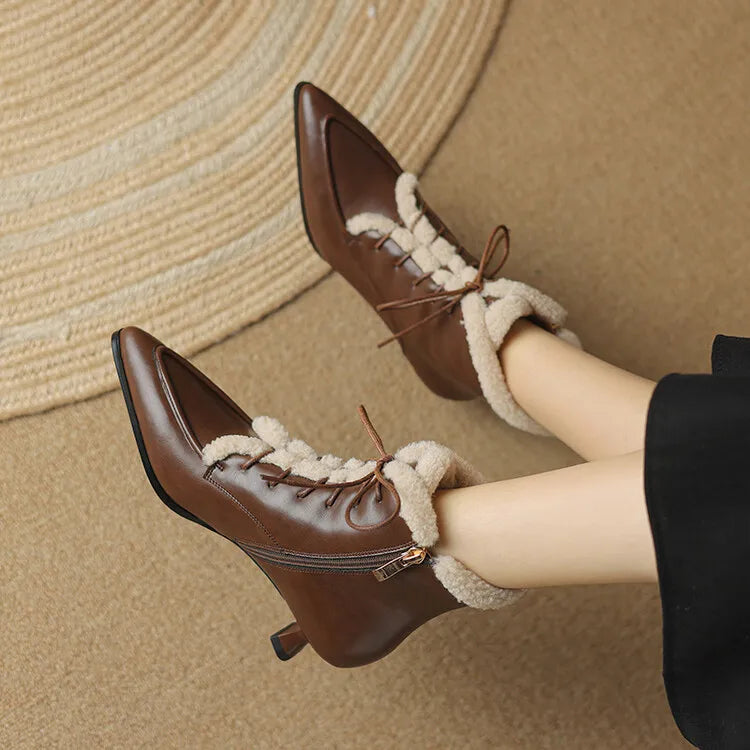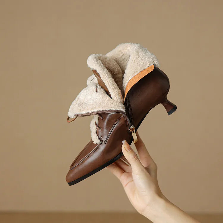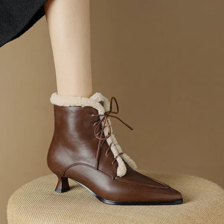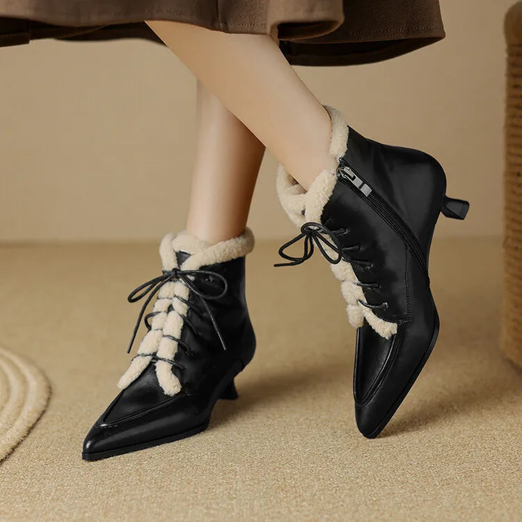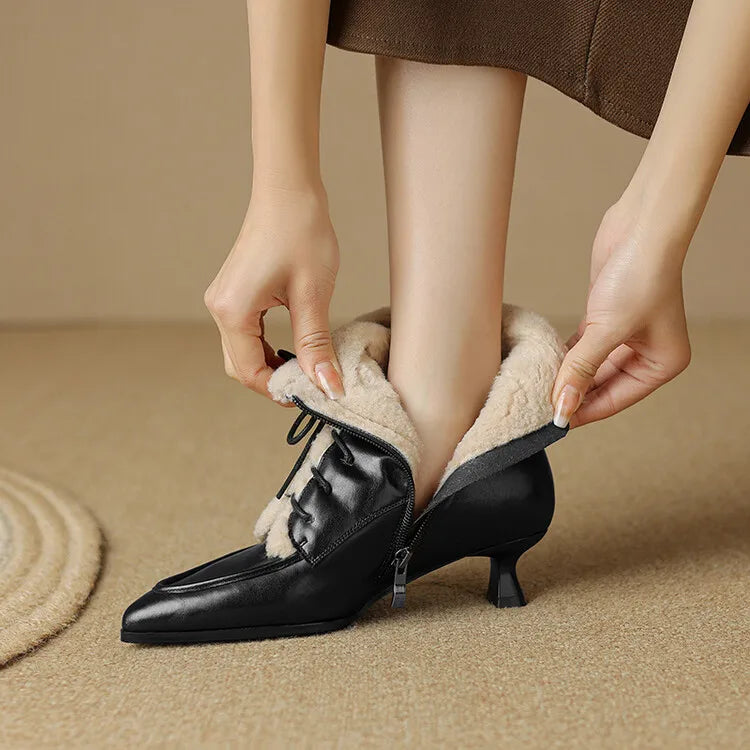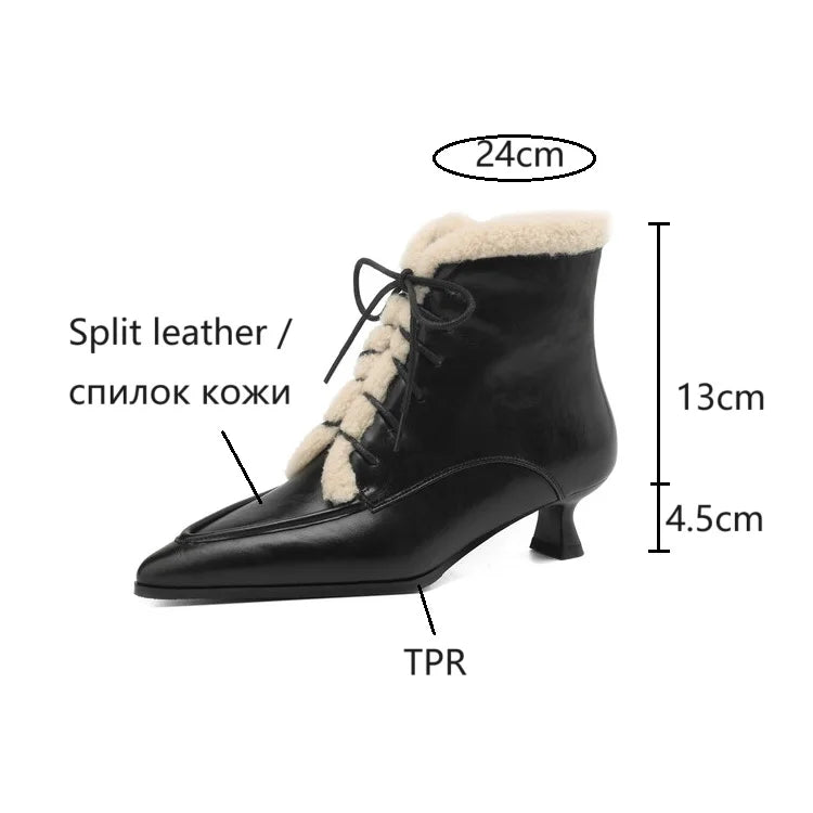 NEW Winter Women Shoes Split Leather Shoes for Women Pointed Toe Kitten Heel Shoes Elegant Modern Boots Wool Blend Ankle Boots