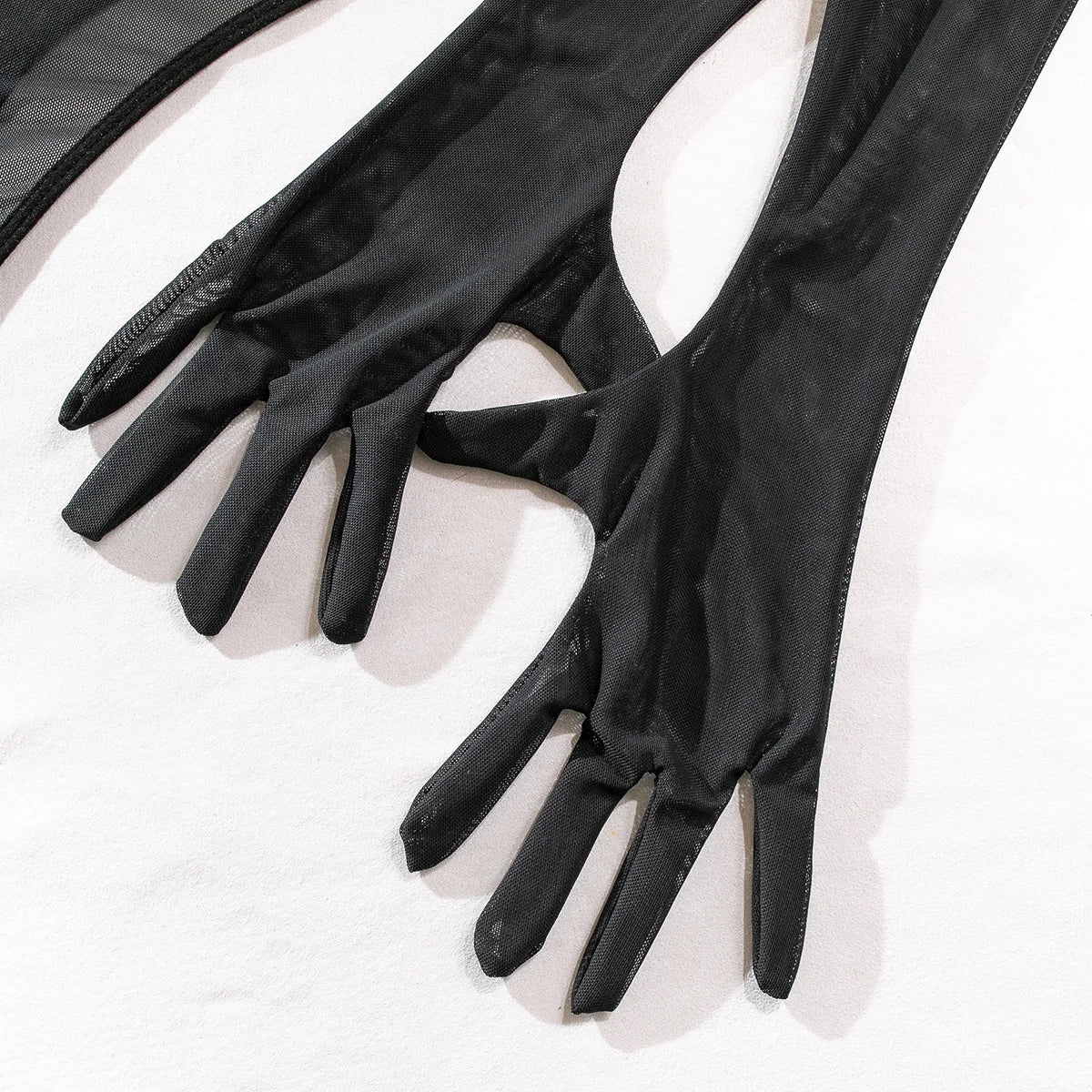 One-piece Bodysuit Women Black Transparent Mesh Patchwork Neck Garter Sexy Bodysuit with Gloves Clubwear Body Femme Jumpsuit