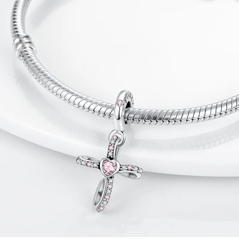 Original 925 Sterling Silver Pink Series Charms Beads Bow Perfume Bottle Heart-Shaped Cross Pendant Fit Bracelet DIY Jewelry