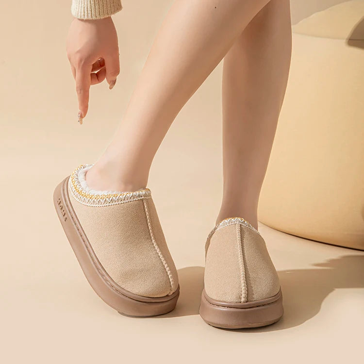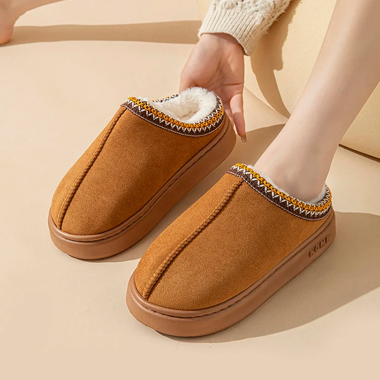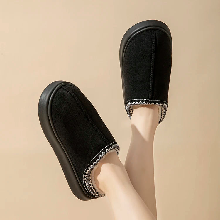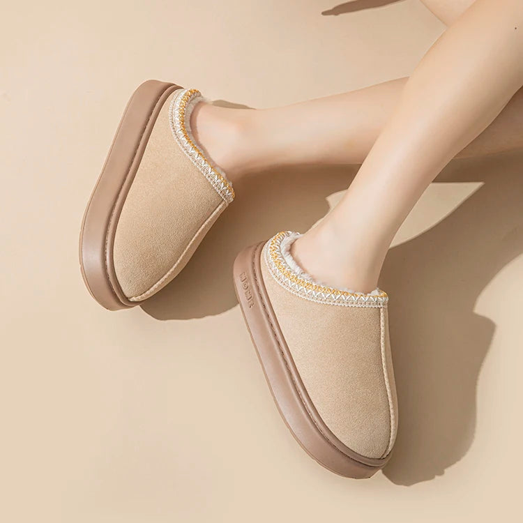 Platform Fluffy Slippers Women House Flats Fashion Plush Winter Designer Shoes Ladies Home Elegant Casual Footwear Large Size