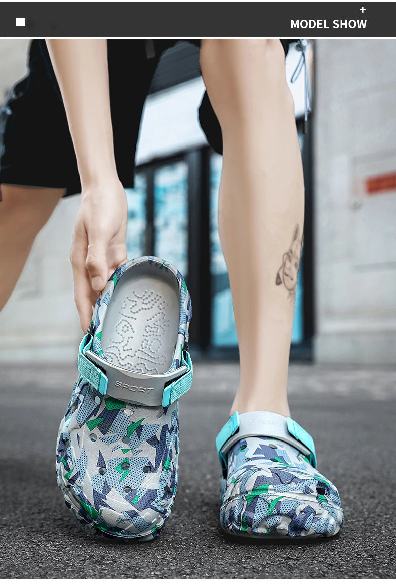 Shoes Men's Clogs Slippers Sandals 46 47 Male Garden Shoes Flat Camouflage Sandals Male Big Size Outdoor Flip Flops Home Clogs