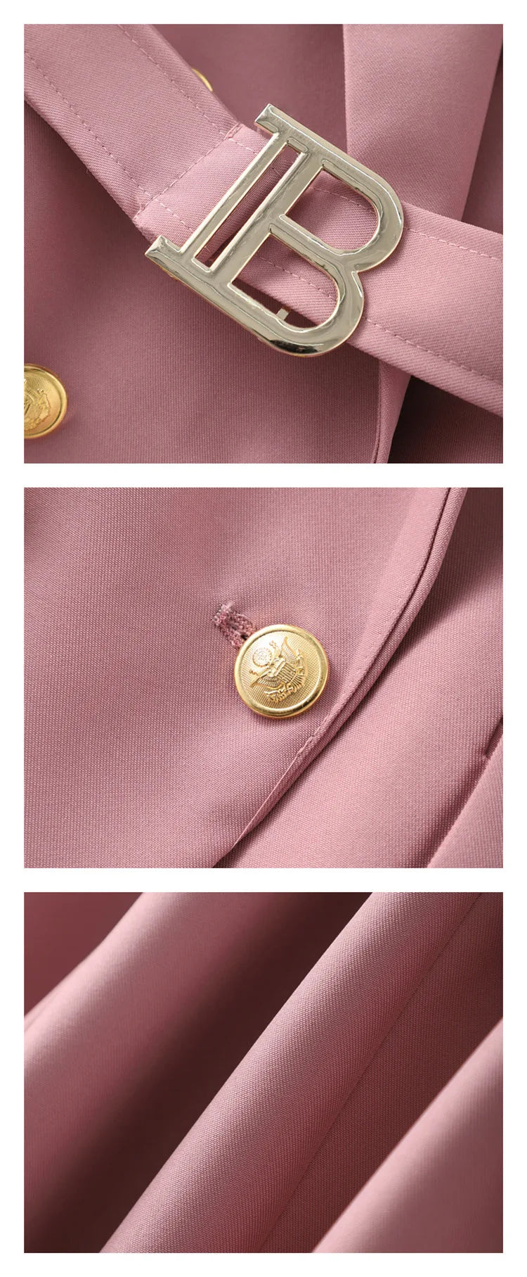 The double-breasted design adds a touch of elegance and sophistication to this already stunning piece.