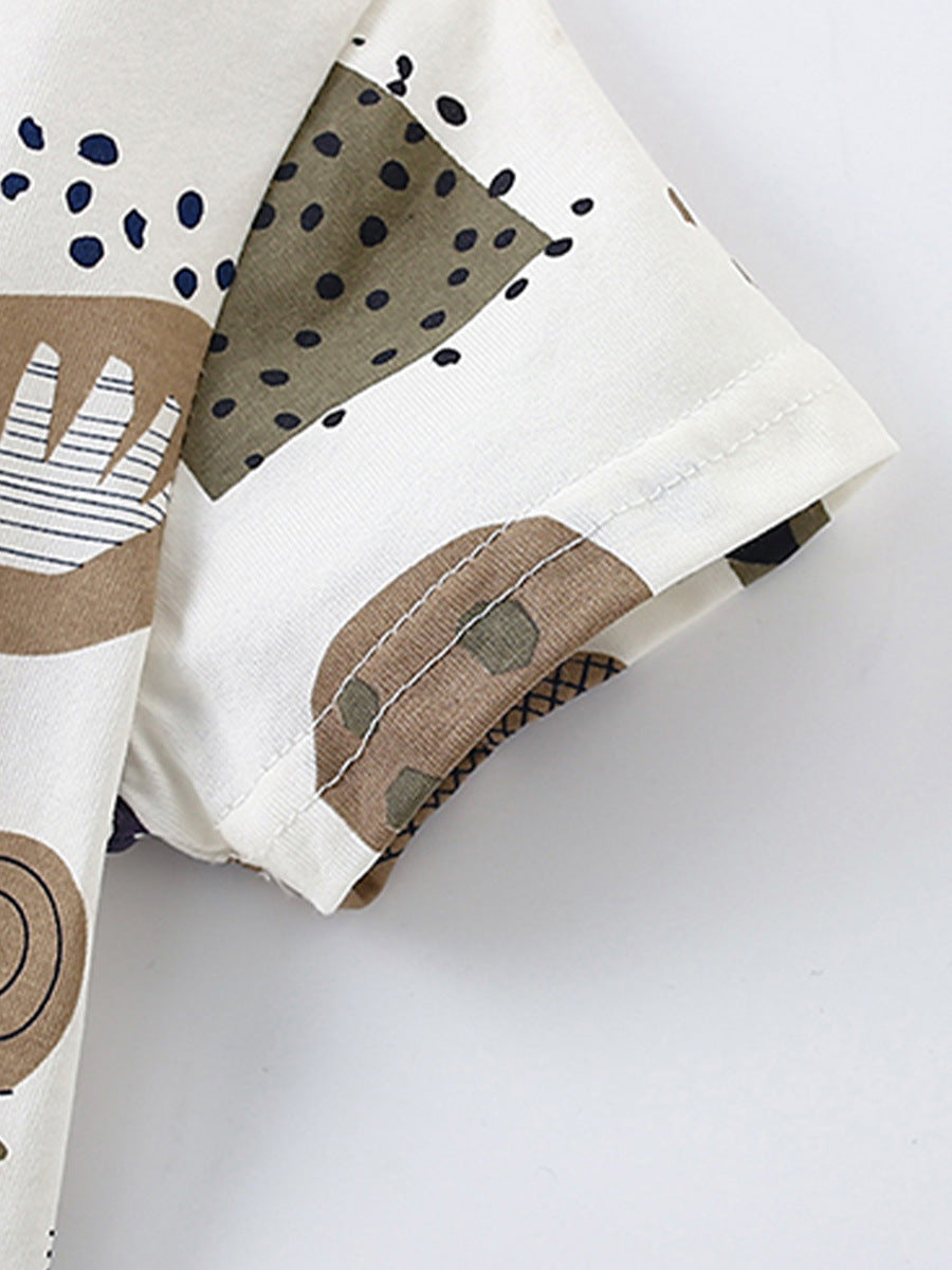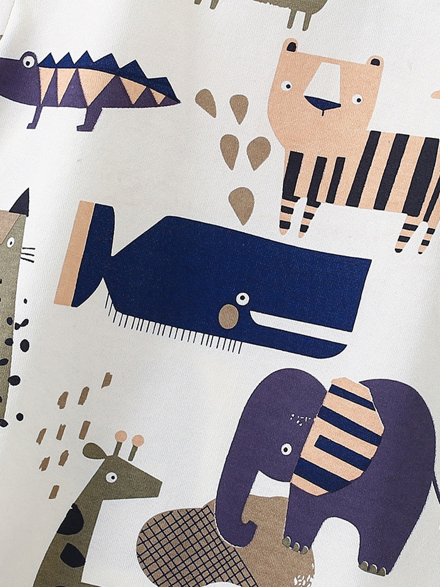 Keep your little ones cool and comfy with this playful summer set! Featuring a short-sleeve T-shirt and matching shorts decorated with colorful abstract animal cartoons, this unisex outfit sparks imagination and fun. Perfect for carefree days of play, its soft fabric and casual fit ensure all-day comfort and easy movement. A delightful choice for warm-weather adventures!