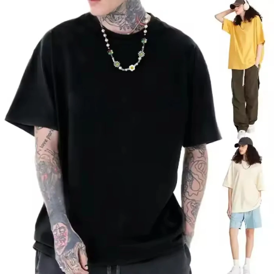 Summer Men's Short Sleeved T-shirt High-Quality Combed Cotton Solid Color Fashion Casual Round Neck Cool Women/Men Tops Loose
