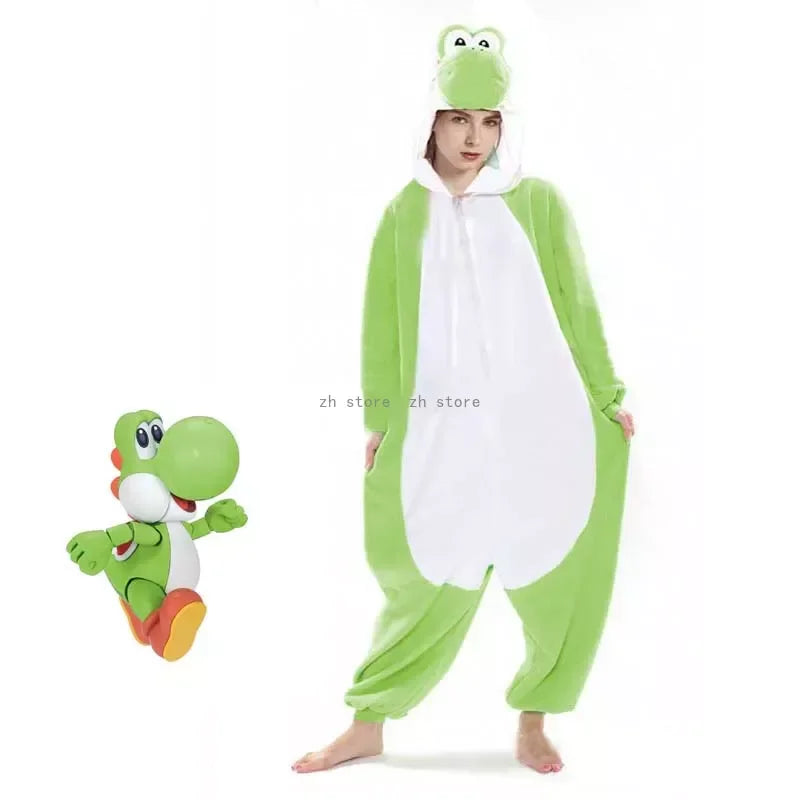 Super Mari0 LUIGI Yoshi Onesie Frog Cosplay Costume Kigurumi Halloween Christmas Fleece Pajama LOVERS Full Body Homewear GIFT