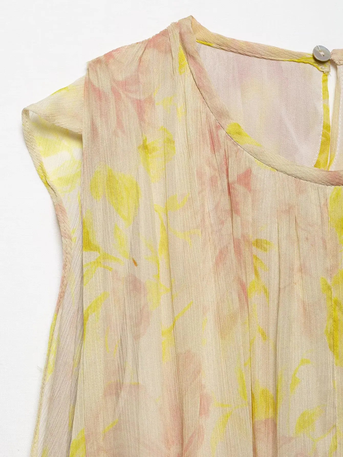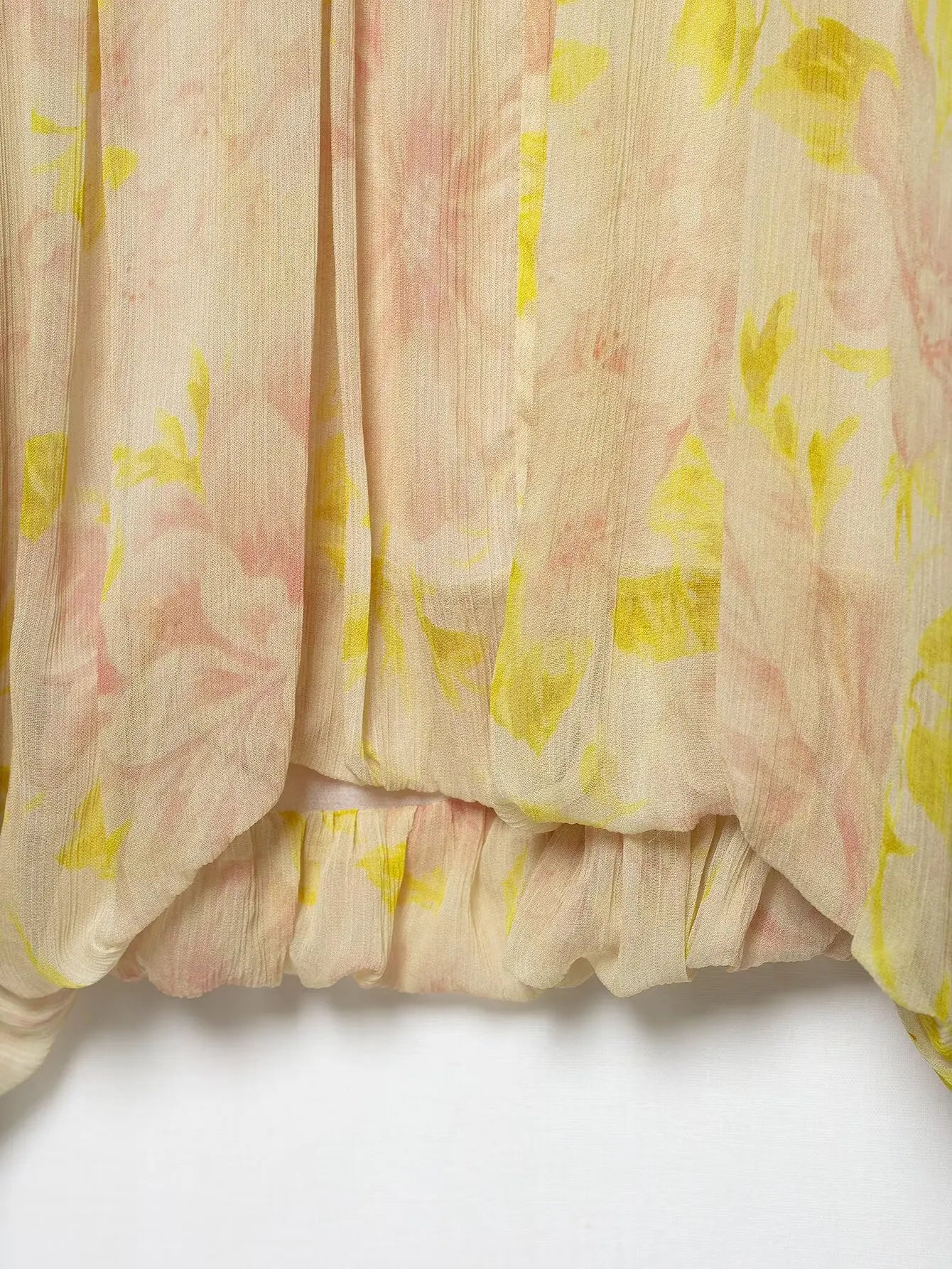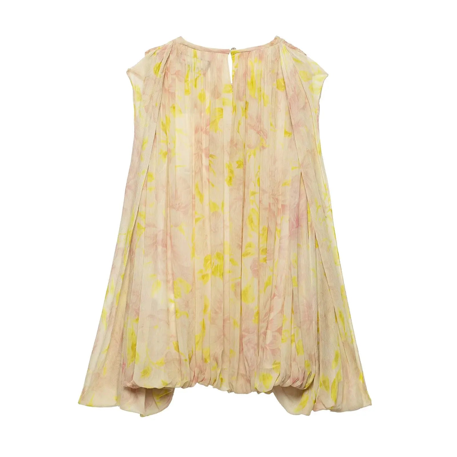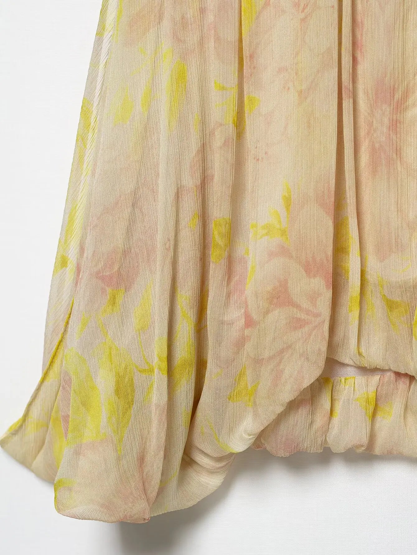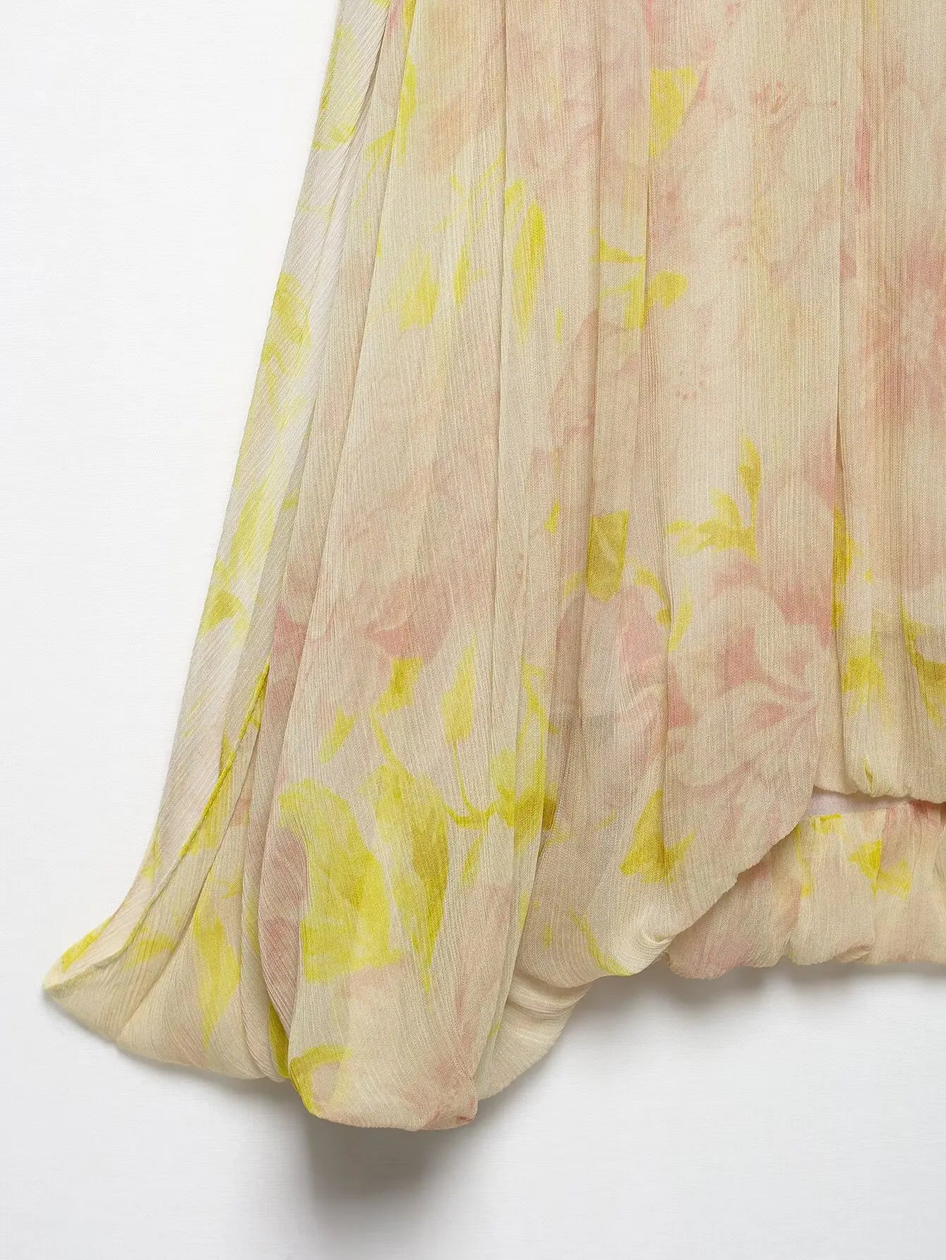 TFMLN Summer Luxury High-End Women Shirt 2025 New Puff Sleeve Chiffon Blouse Back Button Fashionable Feel Beach StylePrint Tops