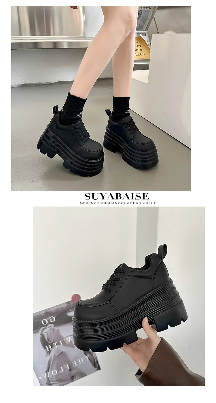 Thick Bottom Fashion Women Pumps Spring Autumn New Height Increase Black Lace Loafers Female High Heels Shoes