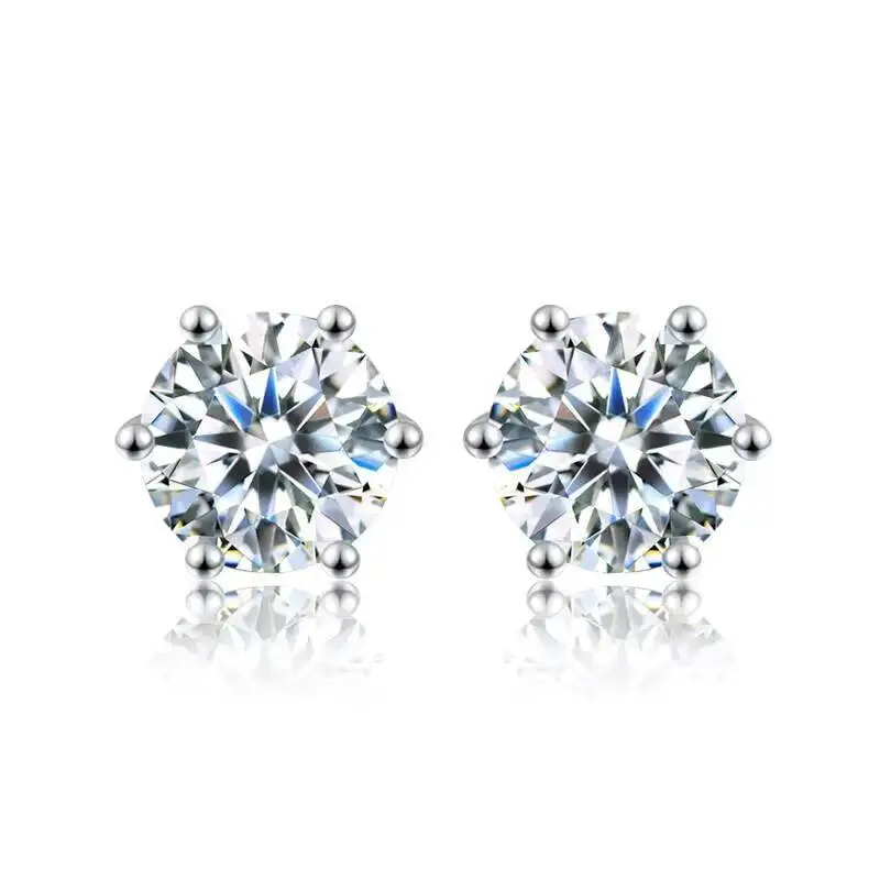 TY D Color Brilliant Round Cut Lab Moissanite Dia Stud Earrings For Women 925 Sterling Silver Plated Wedding Fine Jewelry Gift
