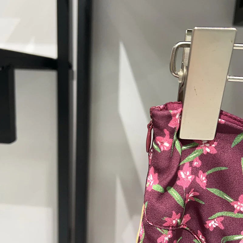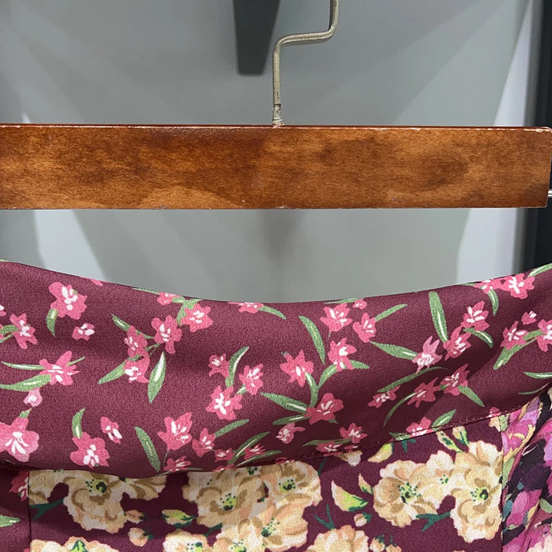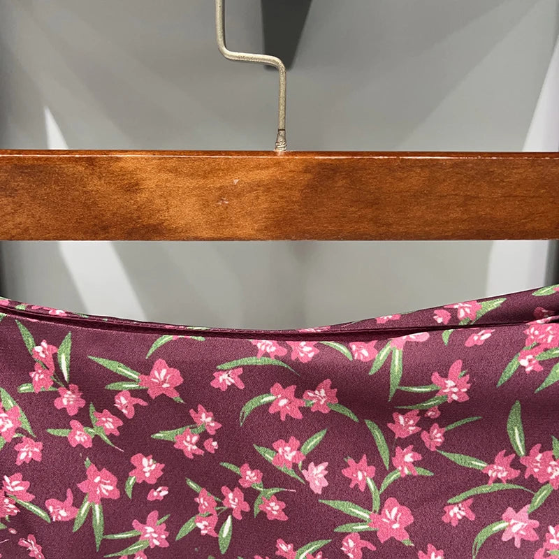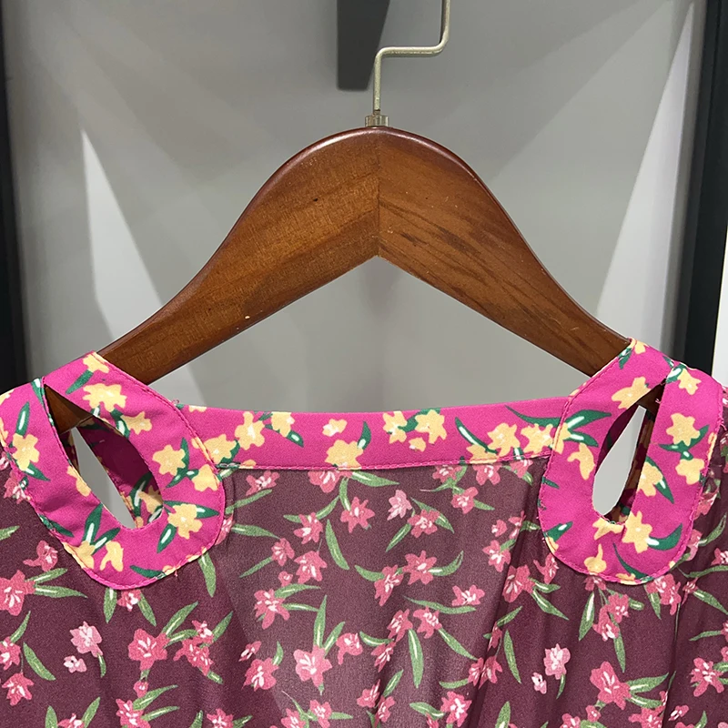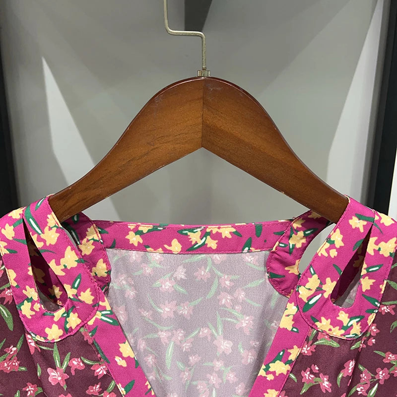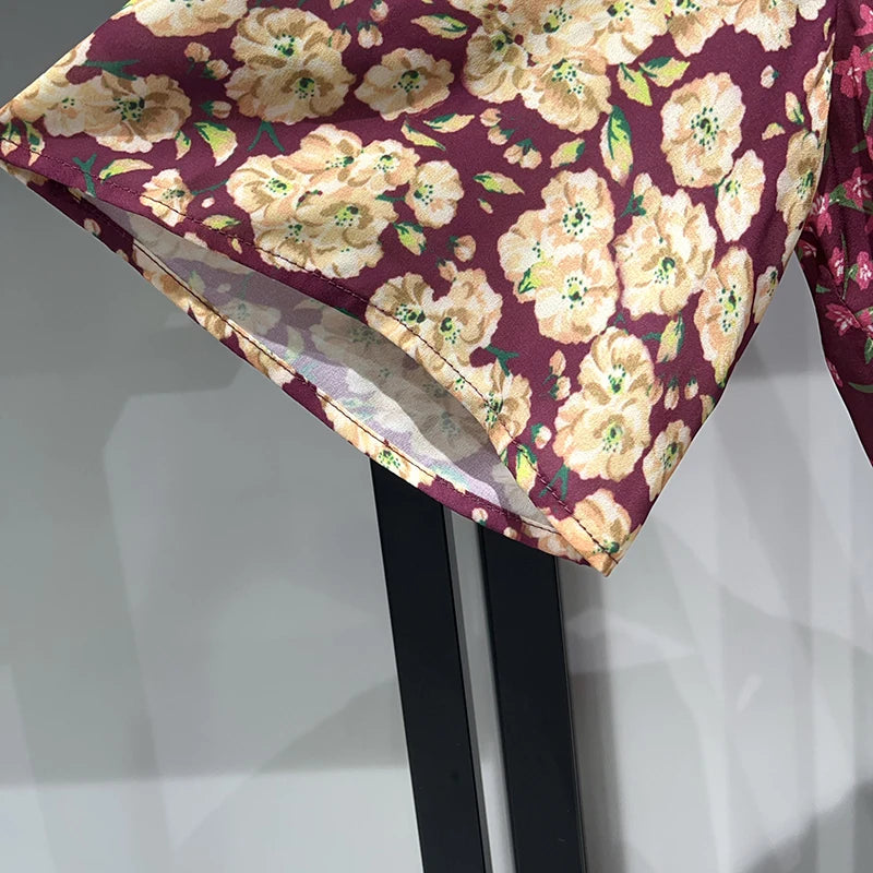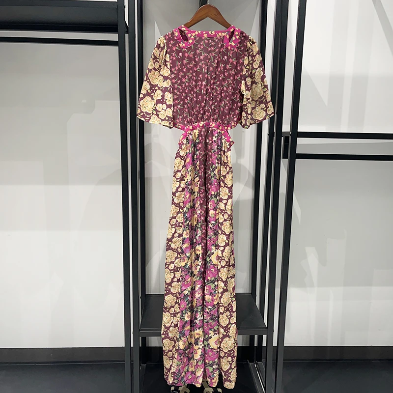 Waist Hollow out Women's Long Dress Deep V Short Sleeve 2025 Summer Lady Floral Printed Robe