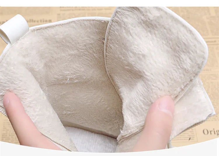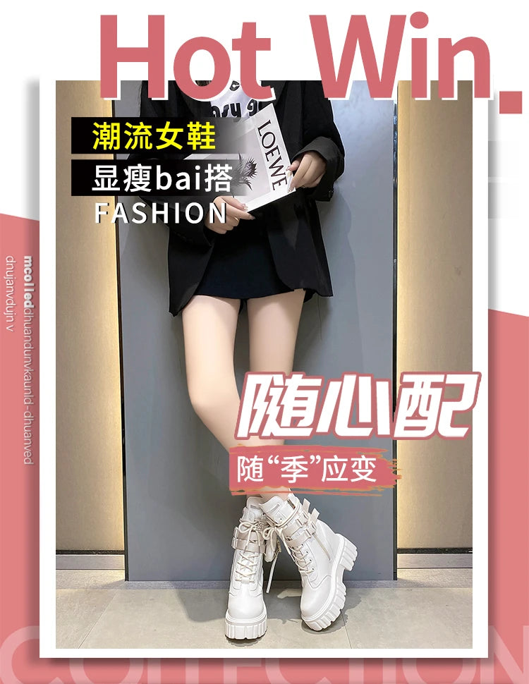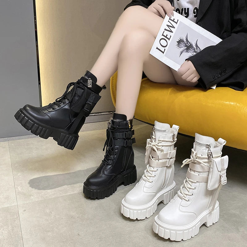 Winter Warm Ankle Boots for Women Leather Short Boots Round Toe High Platform Fur Motorcycle Boots Thick Heel Sneakers Shoe 10cm
