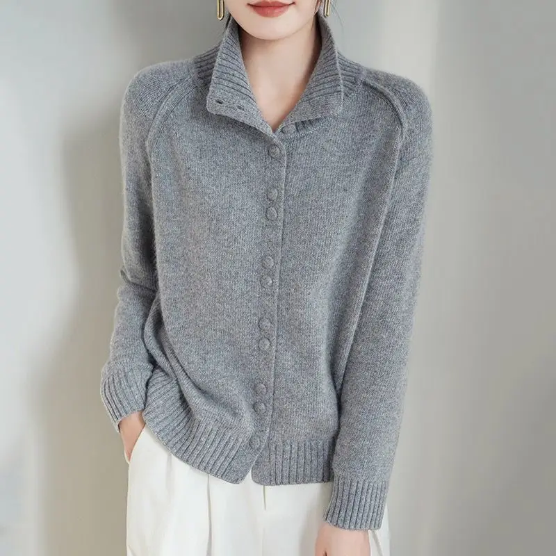 Women's Clothing High Neck 2025 Loose Autumn and Winter New Lazy Retro Wool Knitted Cardigan Jacket Sweater