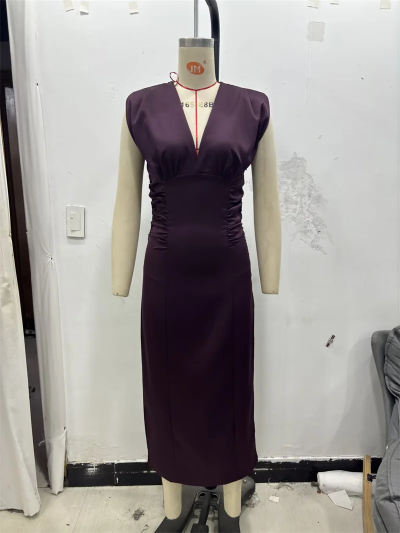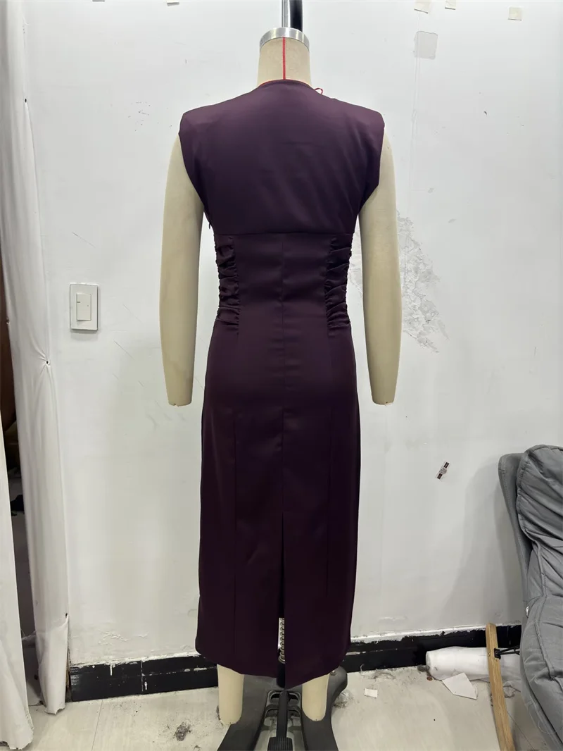 Women's Dress New Fall 2025 Purple Sleeveless Draped Dress Long Dress Elegant Personality Fashion