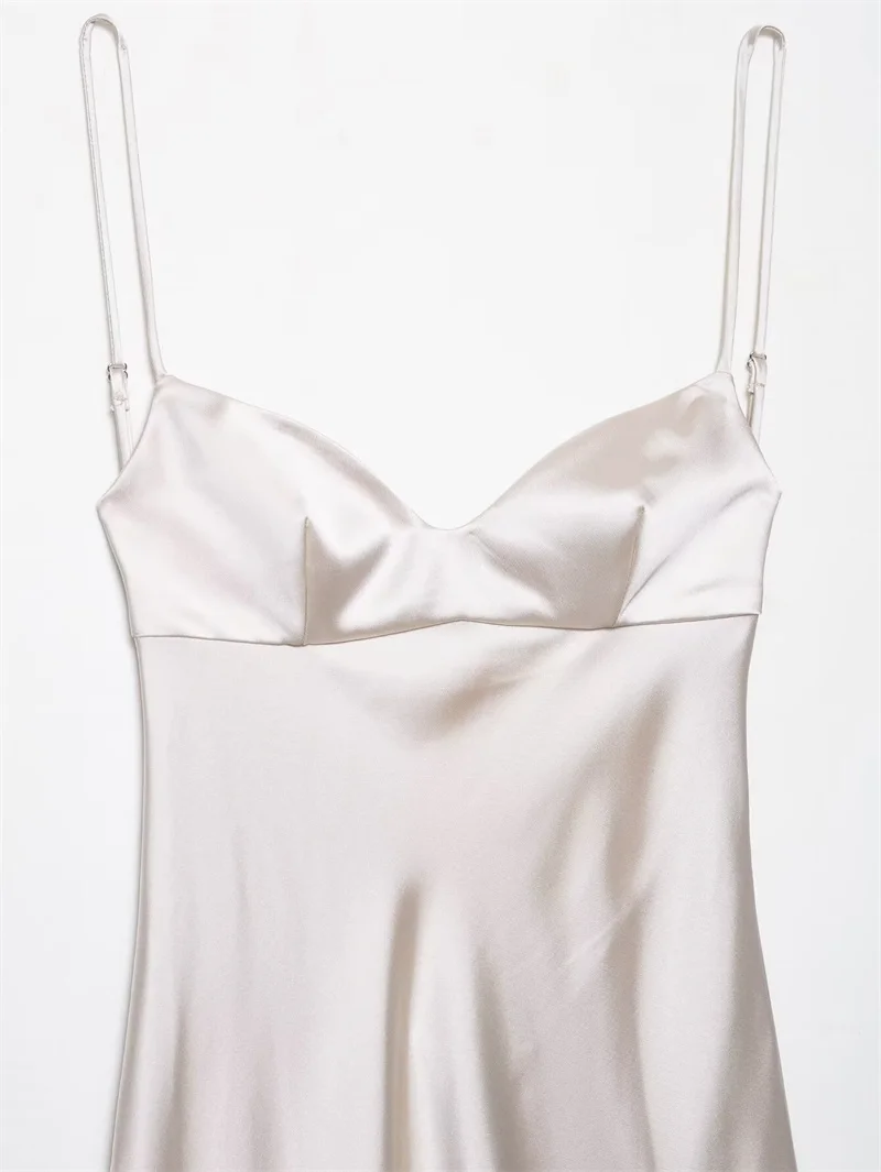 Women's Dress New Summer 2025 White Suspender Silk Satin Texture Irregular Dress Sexy Fashion Elegant Personality