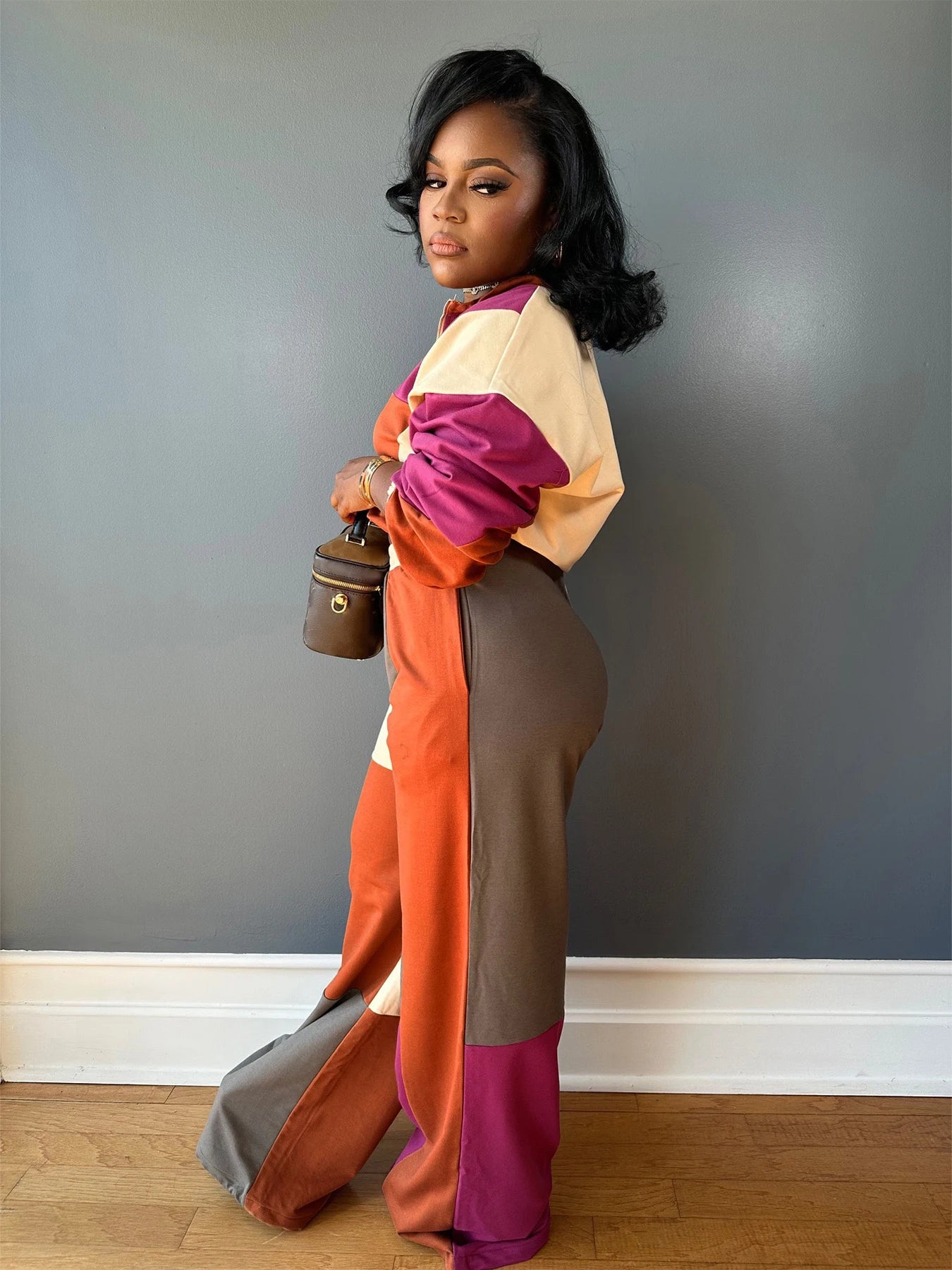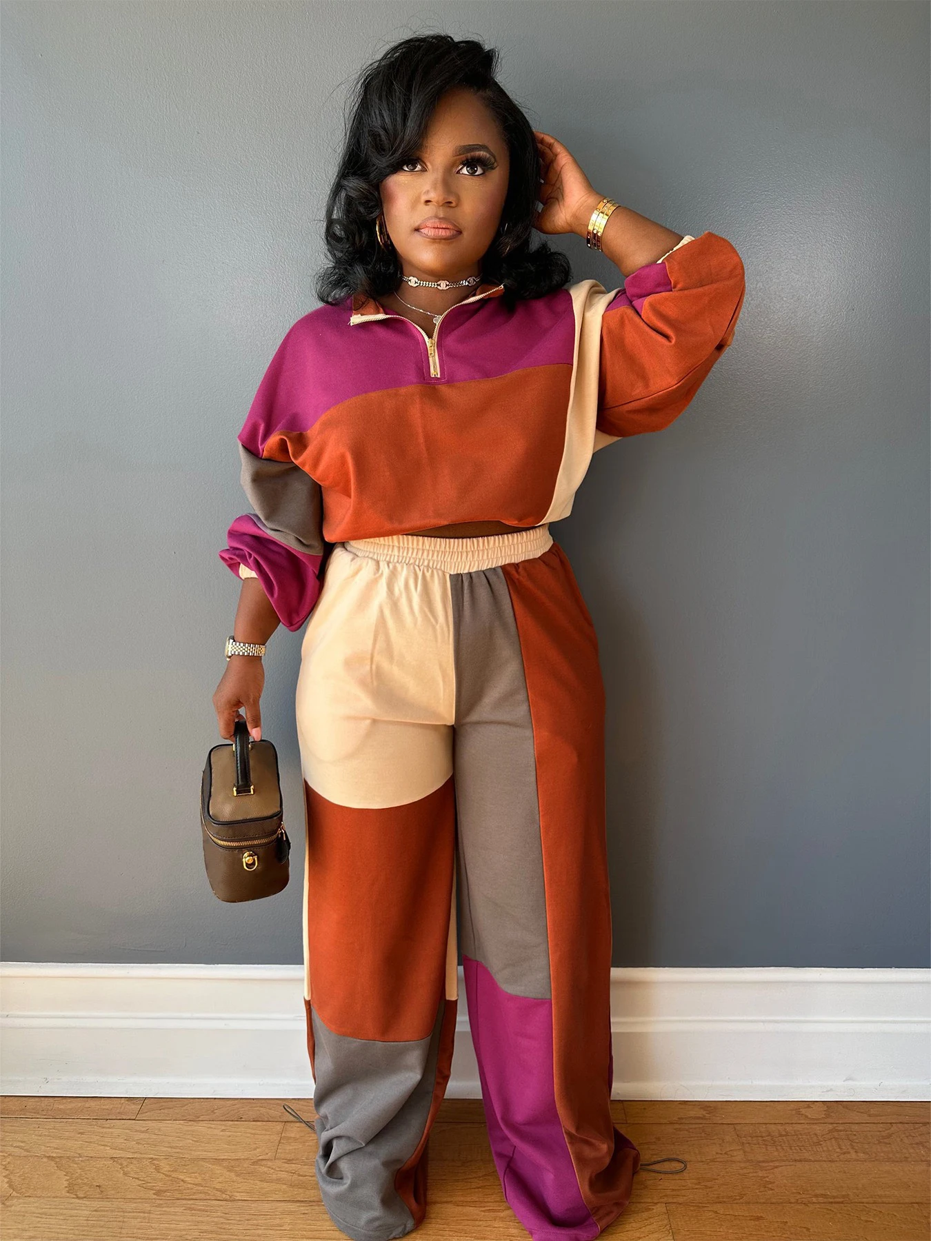 Women's New Colorblock Two-Piece Sports Suit, Machine Washable, Suitable for Spring and Autumn