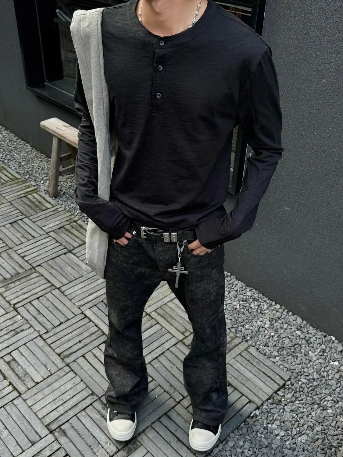 Y2k Women Streetwear Embroidery Grunge Autumn T-shirts Loose Single Breasted Black Tops Aesthetic Casual Style Vintage Tees